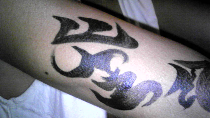 これは7月25日の深夜にパフォーマンスした時の、腕に描いた模様の一つ。